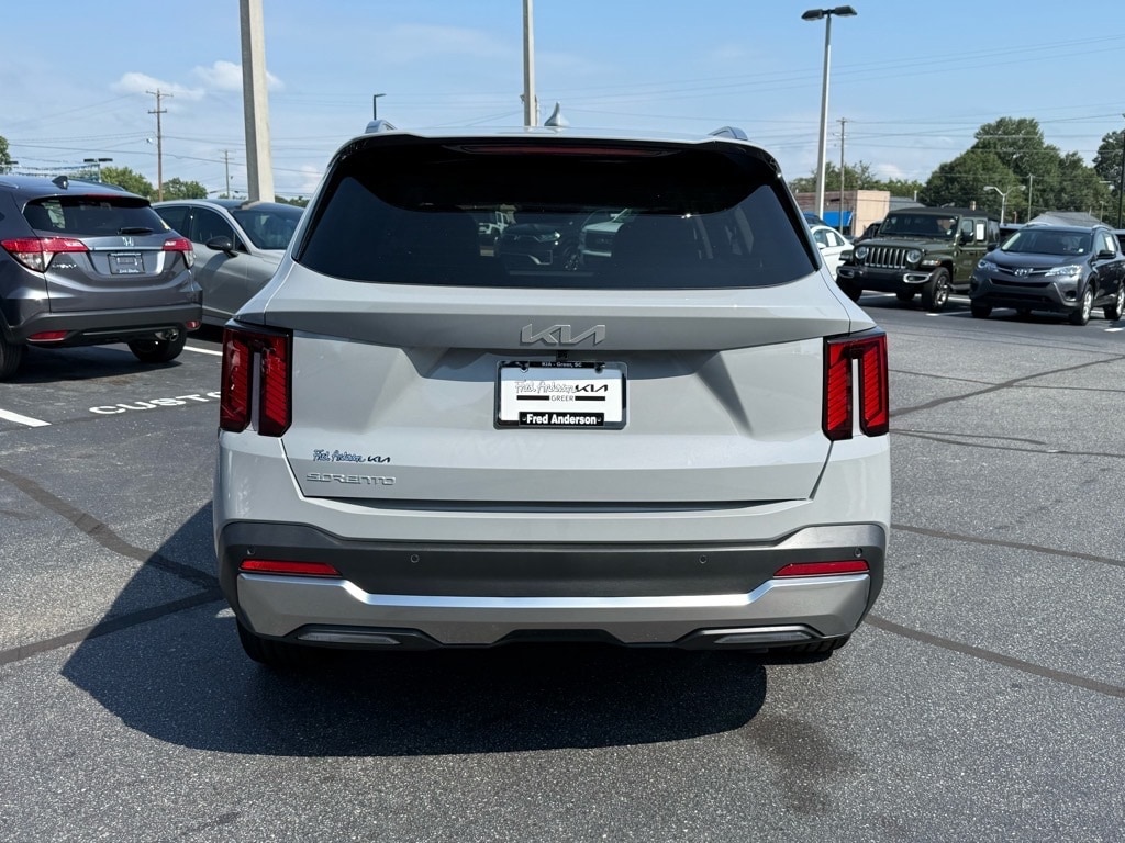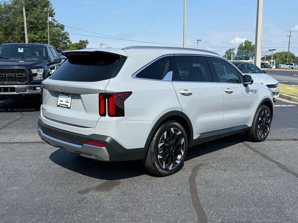 2025 Kia Sorento SX Wolf Gray 3rd row seats: split-bench, 4-Wheel Disc Brakes, 6 Speakers, ABS brakes, Air Conditioning, Alloy wheels, AM/FM radio: SiriusXM, Apple CarPlay & Android Auto, Auto High-beam Headlights, Auto-dimming Rear-View mirror, Automatic temperature control, Brake assist, Bumpers: body-color, Cargo Net, Carpeted Floor Mats, Delay-off headlights, Driver door bin, Driver vanity mirror, Dual front impact airbags, Dual front side impact airbags, Electronic Stability Control, Emergency communication system: 911 Connect, Exterior Parking Camera Rear, Four wheel independent suspension, Front anti-roll bar, Front Bucket Seats, Front Center Armrest, Front dual zone A/C, Front fog lights, Front reading lights, Fully automatic headlights, Heated & Ventilated Front Bucket Seats, Heated door mirrors, Heated front seats, Illuminated entry, Knee airbag, Leather Shift Knob, Leather steering wheel, Low tire pressure warning, Navigation System, Occupant sensing airbag, Outside temperature display, Overhead airbag, Overhead console, Panic alarm, Passenger door bin, Passenger vanity mirror, Power door mirrors, Power driver seat, Power Liftgate, Power moonroof, Power passenger seat, Power steering, Power windows, Radio data system, Radio: AM/FM Standard Sound System, Rain sensing wipers, Rear anti-roll bar, Rear reading lights, Rear side impact airbag, Rear window defroster, Rear window wiper, Remote keyless entry, Security system, Speed control, Speed-sensing steering, Split folding rear seat, Spoiler, Steering wheel mounted audio controls, SynTex Artificial Leather Seat Trim, Tachometer, Telescoping steering wheel, Tilt steering wheel, Traction control, Trip computer, Turn signal indicator mirrors, Variably intermittent wipers, Ventilated front seats, Wheels: 20" Machine-Finished Gloss Black Alloy.