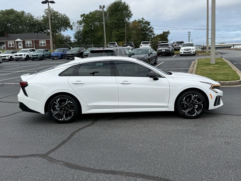 2026 Kia K5 GT-Line FWD Snow White Pearl 4-Wheel Disc Brakes, 6 Speakers, ABS brakes, Air Conditioning, Alloy wheels, AM/FM radio: SiriusXM, Auto High-beam Headlights, Automatic temperature control, Brake assist, Bumpers: body-color, Delay-off headlights, Driver door bin, Driver vanity mirror, Dual front impact airbags, Dual front side impact airbags, Electronic Stability Control, Emergency communication system: Kia Connect (includes 1 year free trial), Four wheel independent suspension, Front anti-roll bar, Front Bucket Seats, Front Center Armrest, Front dual zone A/C, Front fog lights, Front reading lights, Fully automatic headlights, Heated door mirrors, Heated Front Bucket Seats, Heated front seats, Illuminated entry, Knee airbag, Leather Shift Knob, Leather steering wheel, Low tire pressure warning, Navigation System, Occupant sensing airbag, Outside temperature display, Overhead airbag, Overhead console, Panic alarm, Passenger door bin, Passenger vanity mirror, Power door mirrors, Power driver seat, Power steering, Power windows, Radio data system, Radio: AM/FM Audio System, Rear anti-roll bar, Rear seat center armrest, Rear side impact airbag, Rear window defroster, Remote keyless entry, Security system, Speed control, Speed-sensing steering, Split folding rear seat, Sport steering wheel, Steering wheel mounted audio controls, Tachometer, Telescoping steering wheel, Tilt steering wheel, Traction control, Trip computer, Turn signal indicator mirrors, Variably intermittent wipers, Wheels: 18" x 7.5J Gloss Black Machined Finish Alloy. FWD