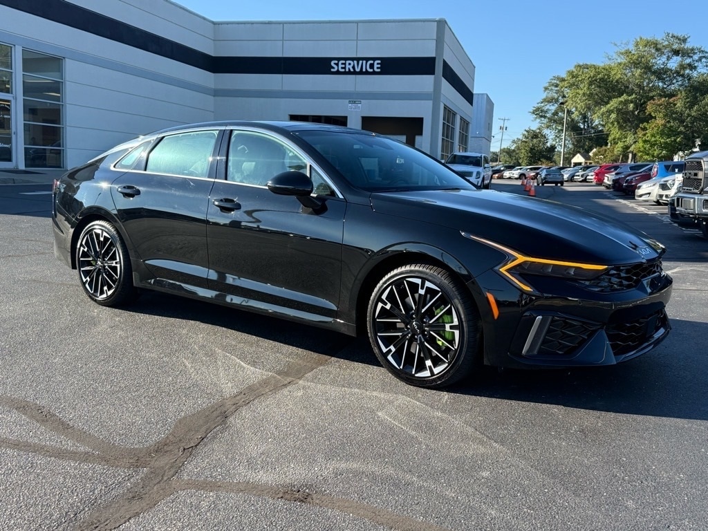 2026 Kia K5 GT Aurora Black 4-Wheel Disc Brakes, 6 Speakers, ABS brakes, Air Conditioning, Alloy wheels, AM/FM radio: SiriusXM, Auto High-beam Headlights, Automatic temperature control, Brake assist, Bumpers: body-color, Cargo Mat, Cargo Net, Cargo Tray, Carpeted Floor Mats, Delay-off headlights, Driver door bin, Driver vanity mirror, Dual front impact airbags, Dual front side impact airbags, Electronic Stability Control, Emergency communication system: Kia Connect (includes 1 year free trial), Four wheel independent suspension, Front anti-roll bar, Front Bucket Seats, Front Center Armrest, Front dual zone A/C, Front fog lights, Front reading lights, Fully automatic headlights, Heated door mirrors, Heated front seats, Heated Sport Bucket Seats, Illuminated entry, Knee airbag, Leather Shift Knob, Leather steering wheel, Low tire pressure warning, Navigation System, Occupant sensing airbag, Outside temperature display, Overhead airbag, Overhead console, Panic alarm, Passenger door bin, Passenger vanity mirror, Power door mirrors, Power driver seat, Power moonroof, Power steering, Power windows, Radio data system, Radio: AM/FM Audio System, Rear anti-roll bar, Rear reading lights, Rear seat center armrest, Rear side impact airbag, Rear window defroster, Remote keyless entry, Security system, Speed control, Speed-sensing steering, Split folding rear seat, Sport steering wheel, Steering wheel mounted audio controls, SynTex Seat Trim, Tachometer, Telescoping steering wheel, Tilt steering wheel, Traction control, Trip computer, Turn signal indicator mirrors, Variably intermittent wipers, Wheels: 19" x 8.0J Gloss Black Machined Finish Alloy.