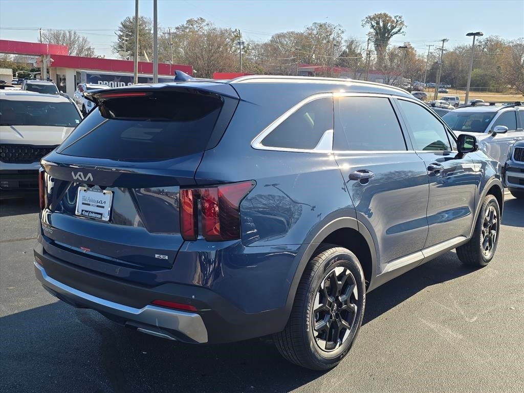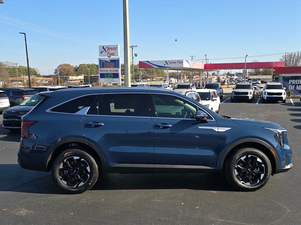 2026 Kia Sorento S Midnight Lake Blue 3rd row seats: split-bench, 4-Wheel Disc Brakes, 6 Speakers, ABS brakes, Air Conditioning, Alloy wheels, AM/FM radio: SiriusXM, Apple CarPlay & Android Auto, Auto High-beam Headlights, Automatic temperature control, Brake assist, Bumpers: body-color, Delay-off headlights, Driver door bin, Driver vanity mirror, Dual front impact airbags, Dual front side impact airbags, Electronic Stability Control, Emergency communication system: 911 Connect, Exterior Parking Camera Rear, Four wheel independent suspension, Front anti-roll bar, Front Bucket Seats, Front Center Armrest, Front dual zone A/C, Front reading lights, Fully automatic headlights, Heated door mirrors, Heated Front Bucket Seats, Heated front seats, Illuminated entry, Knee airbag, Leather Shift Knob, Leather steering wheel, Low tire pressure warning, Occupant sensing airbag, Outside temperature display, Overhead airbag, Overhead console, Panic alarm, Passenger door bin, Passenger vanity mirror, Power door mirrors, Power driver seat, Power steering, Power windows, Radio data system, Radio: AM/FM Standard Sound System, Rear anti-roll bar, Rear reading lights, Rear seat center armrest, Rear side impact airbag, Rear window defroster, Rear window wiper, Remote keyless entry, Security system, Speed control, Speed-sensing steering, Split folding rear seat, Spoiler, Steering wheel mounted audio controls, SynTex Artificial Leather Seat Trim, Tachometer, Telescoping steering wheel, Tilt steering wheel, Traction control, Trip computer, Turn signal indicator mirrors, Variably intermittent wipers, Wheels: 18" Gloss Black Alloy.