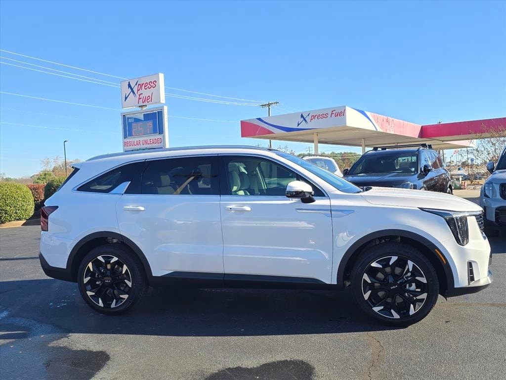 2026 Kia Sorento EX Glacial White Pearl 2nd Row Captain's Chairs, 3rd row seats: split-bench, 4-Wheel Disc Brakes, 6 Speakers, ABS brakes, Air Conditioning, Alloy wheels, AM/FM radio: SiriusXM, Apple CarPlay & Android Auto, Auto High-beam Headlights, Auto-dimming Rear-View mirror, Automatic temperature control, Brake assist, Bumpers: body-color, Cargo Tray, Carpeted Floor Mats, Delay-off headlights, Driver door bin, Driver vanity mirror, Dual front impact airbags, Dual front side impact airbags, Electronic Stability Control, Emergency communication system: 911 Connect, EX Premium Package, Exterior Parking Camera Rear, Four wheel independent suspension, Front anti-roll bar, Front Bucket Seats, Front Center Armrest, Front dual zone A/C, Front fog lights, Front reading lights, Full-Length One-Touch Panoroof w/Sliding Sunshade, Fully automatic headlights, Heated door mirrors, Heated Front Bucket Seats, Heated front seats, Illuminated entry, Knee airbag, Leather Shift Knob, Leather steering wheel, LED Interior Lighting, Low tire pressure warning, Navigation System, Occupant sensing airbag, Outside temperature display, Overhead airbag, Overhead console, Panic alarm, Passenger door bin, Passenger vanity mirror, Power door mirrors, Power driver seat, Power Liftgate, Power passenger seat, Power steering, Power windows, Radio data system, Radio: AM/FM Bose Premium Audio System, Radio: AM/FM Standard Sound System, Rear anti-roll bar, Rear reading lights, Rear seat center armrest, Rear side impact airbag, Rear window defroster, Rear window wiper, Remote keyless entry, Security system, Speed control, Speed-sensing steering, Split folding rear seat, Spoiler, Steering wheel mounted audio controls, SynTex Artificial Leather Seat Trim, Tachometer, Telescoping steering wheel, Tilt steering wheel, Traction control, Trip computer, Turn signal indicator mirrors, Variably intermittent wipers, Wheels: 20" Machine-Finished Gloss Black Alloy.