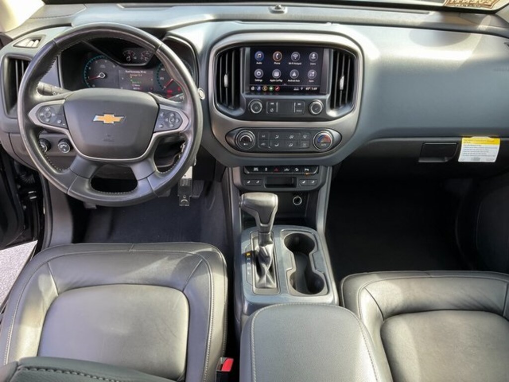 Check out all these great Heavy-Duty Trailering Package, Preferred Equipment Group 4Z7 (Hitch Guidance, Tow/Haul Mode, and UltraSonic Rear Park Assist), 3.42 Rear Axle Ratio, 4-Wheel Disc Brakes, 6 Speakers, 6-Speaker Audio System Feature, ABS brakes, Air Conditioning, Alloy wheels, AM/FM radio: SiriusXM, Apple CarPlay/Android Auto, Auto-dimming Rear-View mirror, Automatic temperature control, Black Spray-On Bedliner w/Chevrolet Logo, Bumpers: body-color, Cloth/Leatherette Seat Trim, Compass, Delay-off headlights, Driver 6-Way Power Seat Adjuster, Driver door bin, Driver vanity mirror, Dual front impact airbags, Dual front side impact airbags, Electronic Stability Control, Exhaust Brake, Exterior Parking Camera Rear, Front anti-roll bar, Front Bucket Seats, Front Center Armrest, Front fog lights, Front reading lights, Front wheel independent suspension, Fully automatic headlights, HD Radio, Heated door mirrors, Heated Driver & Front Passenger Seats, Heated front seats, Heated steering wheel, Illuminated entry, Integrated Trailer Brake Controller, Low tire pressure warning, Occupant sensing airbag, Outside temperature display, Overhead airbag, Overhead console, Panic alarm, Passenger door bin, Passenger vanity mirror, Power door mirrors, Power Driver Lumbar Control Seat Adjuster, Power driver seat, Power steering, Power windows, Premium audio system: Chevrolet Infotainment 3 Plus, Radio data system, Radio: Chevrolet Infotainment 3 Plus System, Rear reading lights, Rear seat center armrest, Rear step bumper, Rear window defroster, Remote keyless entry, Security system, SiriusXM Radio, Speed control, Speed-sensing steering, Steering wheel mounted audio controls, Tachometer, Telescoping steering wheel, Tilt steering wheel, Traction control, Trip computer, Variably intermittent wipers, and Wheels: 17" x 8" Bright Machined Aluminum. Black 2021 Chevrolet Colorado Z71 **STEERING WHEEL AUDIO CONTROLS**, **LOCAL TRADE**, **KEYLESS ENTRY**, **GREAT CARFAX SERVICE HISTORY**, **BEDLINER**, **AUTOMATIC TRANSMISSION**, **4WD**, **BACK UP CAMERA**, **BLUETOOTH**, **POWER SEAT**, **Heated Seats**. 19/28 City/Highway MPG