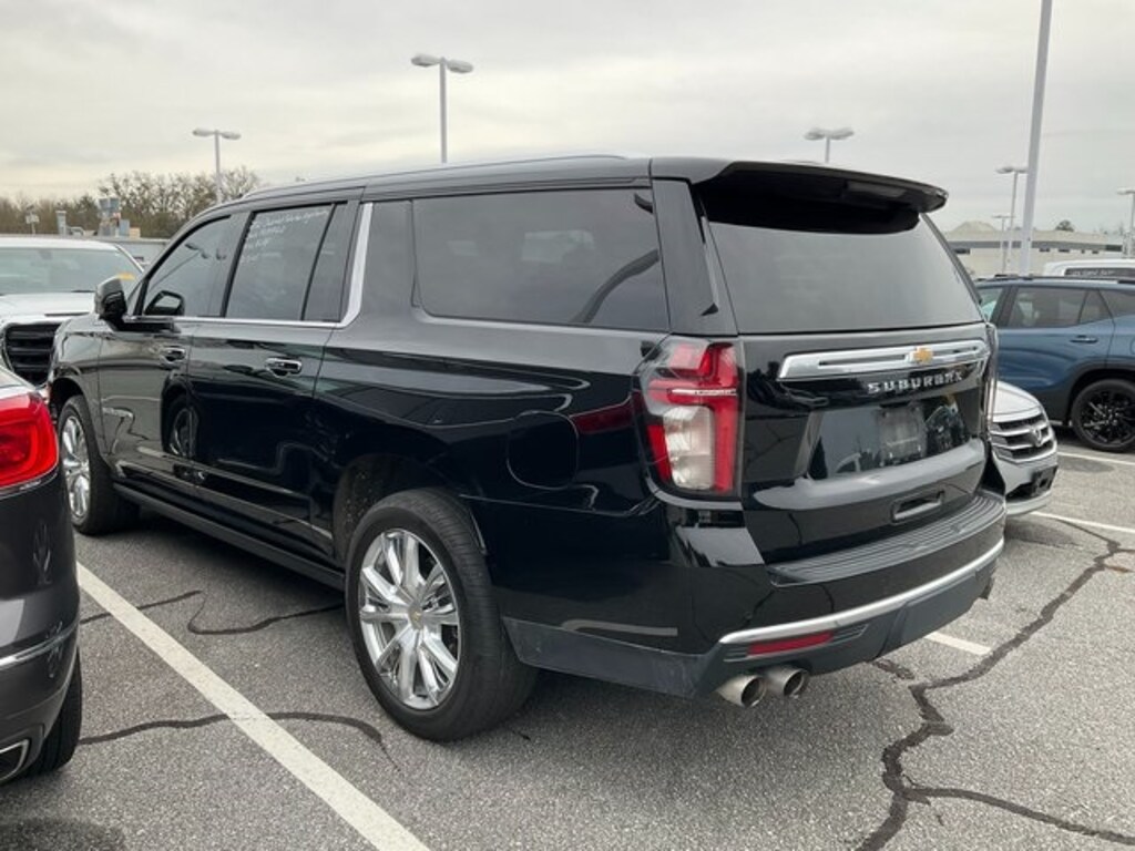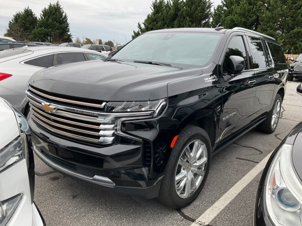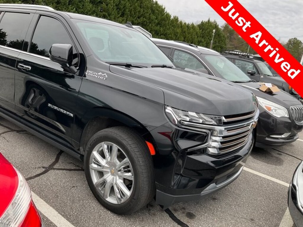 Check out all these great Advanced Trailering Package (Advanced Trailering System, Hitch Guidance w/Hitch View, Integrated Trailer Brake Controller, and Trailer Side Blind Zone Alert), High Country Deluxe (Adaptive Cruise Control, Air Ride Adaptive Suspension, Dual-Pane Power Panoramic Sunroof, Enhanced Automatic Emergency Braking, and Power-Retractable Assist Steps), Max Trailering Package (Extra Capacity Cooling System), Preferred Equipment Group 3LZ (12-Way Power Driver & Passenger Seat Adjusters, 15" Diagonal Multi-Color Head-Up Display, 1st & 2nd Row Color-Keyed Carpeted Floor Mats, 2 USB Data Ports, 2-Speed Active Electronic AutoTrac Transfer Case, 3rd Row 60/40 Power-Folding Split-Bench, Automatic Heated Steering Wheel, Bose 10-Speaker Surround w/CenterPoint, Bright Front & Rear Door Sill Plates, Chrome Door Handles w/Body-Color Strip, Color-Keyed Carpeting Floor Covering, Driver & Front Outboard Passenger Airbags, Dual Exhaust System, Enhanced Driver Information Center, Floor Console w/Storage Area, Front & Rear Park Assist, Hands-Free Rear Power Programmable Liftgate, HD Radio, HD Surround Vision, Heated & Ventilated Driver & Front Passenger Seats, Heated 2nd Row Outboard Seats, Heated Driver & Front Passenger Seats, Hill Descent Control, Infotainment Display, Inside Rearview Auto-Dimming Rear Camera Mirror, Lane Change Alert w/Side Blind Zone Alert, Lane Keep Assist w/Lane Departure Warning, Leather-Wrapped Steering Wheel, LED Daytime Running Lamps, Memory Settings, Outside Heated Power-Adjustable Mirrors, Power Release 2nd Row Bucket Seats, Power Tilt & Telescopic Steering Column, Rear Camera Mirror Washer, Rear Cross Traffic Alert, Rear Pedestrian Alert, Remote Start, Safety Alert Seat, SiriusXM Radio w/360L, and Universal Home Remote), 10 Speakers, 2nd Row Pwr Release 60/40 Split-Folding Bench Seat, 3.23 Rear Axle Ratio, 3rd row seats: split-bench, 4-Wheel Disc Brakes, ABS brakes, Adaptive suspension, Air Conditioning, Alloy wheels, AM/FM radio: SiriusXM with 360L, Apple CarPlay/Android Auto, Auto High-beam Headlights, Auto-dimming door mirrors, Auto-dimming Rear-View mirror, Auto-leveling suspension, Automatic temperature control, Brake assist, Bumpers: body-color, Compass, Delay-off headlights, Driver door bin, Driver vanity mirror, Dual front impact airbags, Dual front side impact airbags, Electronic Stability Control, Emergency communication system: OnStar and Chevrolet connected services capable, Four wheel independent suspension, Front anti-roll bar, Front Bucket Seats, Front Center Armrest, Front dual zone A/C, Front reading lights, Fully automatic headlights, Garage door transmitter, Heads-Up Display, Heated door mirrors, Heated front seats, Heated rear seats, Heated steering wheel, Illuminated entry, Leather steering wheel, Low tire pressure warning, Magnetic Ride Control Suspension, Memory seat, Navigation System, Occupant sensing airbag, Outside temperature display, Overhead airbag, Overhead console, Panic alarm, Passenger door bin, Passenger vanity mirror, Perforated Leather Seating Surfaces, Power door mirrors, Power driver seat, Power Liftgate, Power passenger seat, Power steering, Power windows, Premium audio system: Chevrolet Infotainment 3 Premium, Radio: Chevrolet Infotainment 3 Premium System, Rain sensing wipers, Rear air conditioning, Rear anti-roll bar, Rear reading lights, Rear Seat Media System, Rear window defroster, Rear window wiper, Remote keyless entry, Roof rack: rails only, Security system, Speed control, Speed-sensing steering, Split folding rear seat, Spoiler, Steering wheel memory, Steering wheel mounted audio controls, Tachometer, Telescoping steering wheel, Tilt steering wheel, Traction control, Trip computer, Turn signal indicator mirrors, Variably intermittent wipers, Ventilated front seats, Voltmeter, Wheel Locks (Set of 4) (LPO), and Wheels: 22" x 9" Sterling Silver Premium Painted. Recent Arrival! Black 2021 Chevrolet Suburban High Country CARFAX One-Owner. Clean CARFAX. **