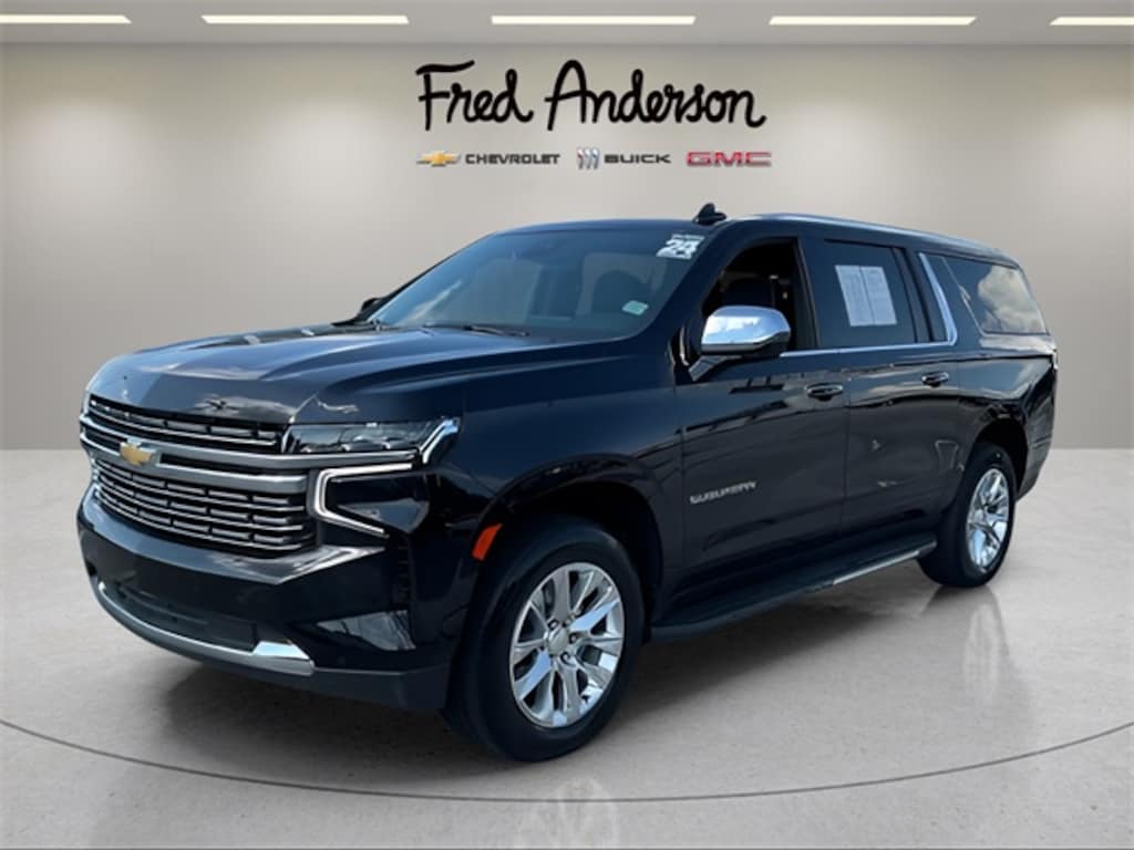 Check out all these great Preferred Equipment Group 1LZ (12-Way Power Driver & Passenger Seat Adjusters, 1st & 2nd Row Color-Keyed Carpeted Floor Mats, 2-Speed Active Electronic AutoTrac Transfer Case, 3rd Row 60/40 Power-Folding Split-Bench, Auto-Dimming Inside Rear-View Mirror, Bose 10-Speaker Surround w/CenterPoint, Bright Front & Rear Door Sill Plates, Chrome Door Handles w/Body-Color Strip, Chrome Mirror Caps, Color-Keyed Carpeting Floor Covering, Driver & Front Outboard Passenger Airbags, Dual Exhaust System, Enhanced Driver Information Center, Floor Console, Hands-Free Rear Power Programmable Liftgate, Heated 2nd Row Outboard Seats, Heated Driver & Front Passenger Seats, Heated Steering Wheel, Hill Descent Control, Infotainment Display, Lane Change Alert w/Side Blind Zone Alert, LED Daytime Running Lamps, Memory Settings, Outside Heated Power-Adjustable Mirrors, Perforated Heated & Ventilated Seats, Power Release 2nd Row Bucket Seats, Power Tilt & Telescopic Steering Column, Rear Cross Traffic Alert, Remote Start, Safety Alert Seat, SiriusXM w/360L, Universal Home Remote, Wireless Charging, and Wrapped Steering Wheel), 10 Speakers, 20" x 9" Polished Aluminum Wheels, 2nd Row Pwr Release 60/40 Split-Folding Bench Seat, 3.23 Rear Axle Ratio, 3rd row seats: split-bench, 4-Wheel Disc Brakes, ABS brakes, Adaptive suspension, Air Conditioning, Alloy wheels, AM/FM radio: SiriusXM with 360L, Apple CarPlay/Android Auto, Auto High-beam Headlights, Auto-dimming door mirrors, Auto-dimming Rear-View mirror, Auto-leveling suspension, Automatic temperature control, Brake assist, Bumpers: body-color, Compass, Delay-off headlights, Deleted 3 Years of Remote Access, Driver door bin, Driver vanity mirror, Dual front impact airbags, Dual front side impact airbags, Electronic Stability Control, Emergency communication system: OnStar and Chevrolet connected services capable, Floor Console w/Storage Area, Four wheel independent suspension, Front anti-roll bar, Front Bucket Seats, Front Center Armrest, Front dual zone A/C, Front reading lights, Fully automatic headlights, Garage door transmitter, Heated door mirrors, Heated front seats, Heated rear seats, Heated steering wheel, Illuminated entry, Low tire pressure warning, Magnetic Ride Control Suspension, Memory seat, Navigation System, Occupant sensing airbag, Outside temperature display, Overhead airbag, Overhead console, Panic alarm, Passenger door bin, Passenger vanity mirror, Perforated Leather Seating Surfaces, Power door mirrors, Power driver seat, Power Liftgate, Power passenger seat, Power steering, Power windows, Premium audio system: Chevrolet Infotainment 3 Premium, Radio: Chevrolet Infotainment 3 Premium System, Rain sensing wipers, Rear air conditioning, Rear anti-roll bar, Rear reading lights, Rear window defroster, Rear window wiper, Remote keyless entry, Roof rack: xxxxxx, Security system, Speed control, Speed-sensing steering, Split folding rear seat, Spoiler, Steering wheel memory, Steering wheel mounted audio controls, Tachometer, Telescoping steering wheel, Tilt steering wheel, Traction control, Trip computer, Turn signal indicator mirrors, Variably intermittent wipers, Ventilated front seats, and Voltmeter. Black 2024 Chevrolet Suburban Premier CARFAX One-Owner. Clean CARFAX. **STEERING WHEEL AUDIO CONTROLS**, **POWER LIFTGATE**, **ONE-OWNER**, **NO ACCIDENT HISTORY ON CARFAX**, **LOCAL TRADE**, **KEYLESS ENTRY**, **GREAT CARFAX SERVICE HISTORY**, **AUTOMATIC TRANSMISSION**, **4WD**, **BACK UP CAMERA**, **BLUETOOTH**, **POWER SEAT**, **NAVIGATION**, **Heated Seats**.