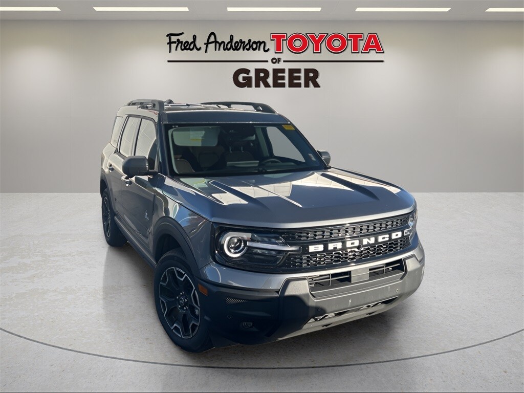 Recent Arrival! CARFAX One-Owner. Clean CARFAX. 2025 Ford Bronco Sport Outer Banks Azure Gray Metallic 360-Degree Camera w/Trail & Split View, 4-Wheel Disc Brakes, 6 Speakers, ABS brakes, Air Conditioning, Alloy wheels, AM/FM radio: SiriusXM, AM/FM Stereo, Auto High-beam Headlights, Auto-dimming Rear-View mirror, Automatic temperature control, B&O Sound System by Bang & Olufsen, Brake assist, Compass, Connected Navigation, Delay-off headlights, Driver door bin, Driver vanity mirror, Dual front impact airbags, Dual front side impact airbags, Electronic Stability Control, Emergency communication system: SYNC 4 911 Assist, Equipment Group 300A, Four wheel independent suspension, Front anti-roll bar, Front Bucket Seats, Front Center Armrest, Front Driver/Passenger Seat Back Map Pockets, Front dual zone A/C, Front fog lights, Front License Plate Bracket, Front Parking Sensors, Front reading lights, Fully automatic headlights, Garage door transmitter, HD Radio, Heated door mirrors, Heated front seats, Heated steering wheel, Illuminated entry, Knee airbag, Low tire pressure warning, Memory seat, Occupant sensing airbag, Outer Banks Tech Package+, Outside temperature display, Overhead airbag, Overhead console, Panic alarm, Passenger door bin, Passenger vanity mirror, Power door mirrors, Power driver seat, Power passenger seat, Power steering, Power windows, Premium Trimmed Front Bucket Seats w/Ebony/Roast, Radio data system, Rain sensing wipers, Rear anti-roll bar, Rear Parking Sensors, Rear reading lights, Rear seat center armrest, Rear window defroster, Rear window wiper, Remote keyless entry, Reverse Brake Assist, Security system, SiriusXM, Speed control, Speed-sensing steering, Speed-Sensitive Wipers, Split folding rear seat, Steering wheel mounted audio controls, SYNC 4 w/Enhanced Voice Recognition, Tachometer, Telescoping steering wheel, Tilt steering wheel, Traction control, Trip computer, Variably intermittent wipers, Wheels: 18" Ebony Black-Painted Aluminum.