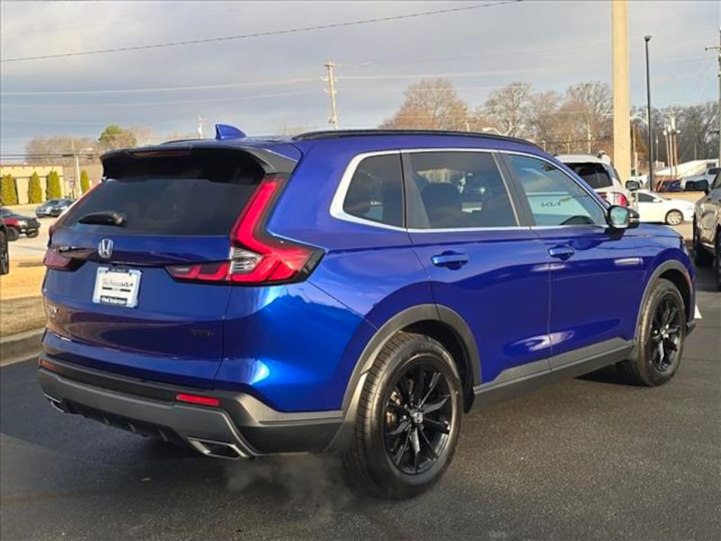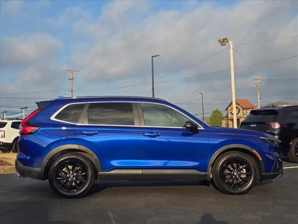 CARFAX One-Owner. 2023 Honda CR-V Hybrid Sport Canyon River Blue Metallic 4-Wheel Disc Brakes, 4.438 Axle Ratio, 6 Speakers, ABS brakes, Adaptive Cruise Control: Adaptive Cruise Control (ACC) with Low-Speed Follow, Air Conditioning, Alloy wheels, Apple CarPlay/Android Auto, Auto High-beam Headlights, Automatic temperature control, Brake assist, Bumpers: body-color, Cloth Seat Trim, Compass, Delay-off headlights, Driver door bin, Driver vanity mirror, Dual front impact airbags, Dual front side impact airbags, Electronic Stability Control, Exterior Parking Camera Rear, Four wheel independent suspension, Front anti-roll bar, Front Bucket Seats, Front Center Armrest, Front dual zone A/C, Front reading lights, Fully automatic headlights, Heated door mirrors, Heated Front Bucket Seats, Heated front seats, Illuminated entry, Knee airbag, Leather Shift Knob, Leather steering wheel, Low tire pressure warning, Occupant sensing airbag, Outside temperature display, Overhead airbag, Overhead console, Panic alarm, Passenger door bin, Passenger vanity mirror, Power door mirrors, Power driver seat, Power moonroof, Power steering, Power windows, Radio data system, Radio: 240-Watt AM/FM Audio System, Rear anti-roll bar, Rear reading lights, Rear seat center armrest, Rear side impact airbag, Rear window defroster, Rear window wiper, Remote keyless entry, Security system, Speed control, Speed-sensing steering, Speed-Sensitive Wipers, Split folding rear seat, Spoiler, Steering wheel mounted audio controls, Telescoping steering wheel, Tilt steering wheel, Traction control, Trip computer, Turn signal indicator mirrors, Variably intermittent wipers, Wheels: 18" Berlina Black Alloy.