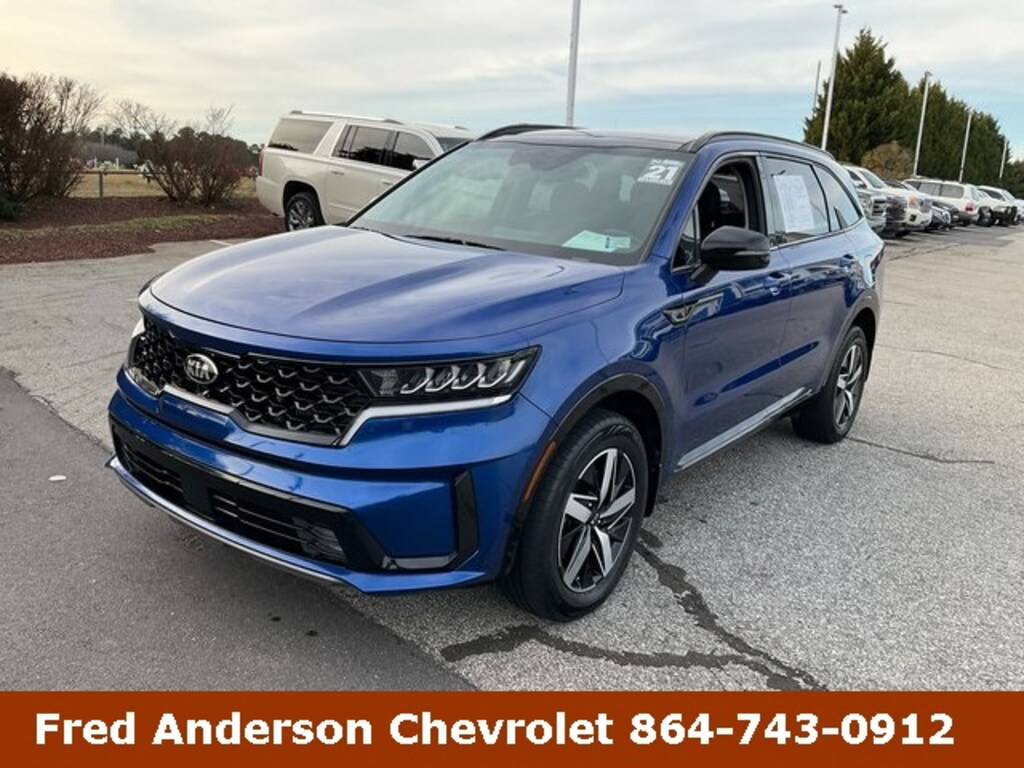 Check out all these great Panoramic Sunroof Package (Power Sunroof w/Power Sunshade), 18" Machine-Finished Alloy Wheels, 3.316 Axle Ratio, 3rd row seats: split-bench, 4-Wheel Disc Brakes, 6 Speakers, ABS brakes, Air Conditioning, Alloy wheels, AM/FM radio: SiriusXM, Apple CarPlay & Android Auto, Auto High-beam Headlights, Auto-Dimming Mirror w/HomeLink, Automatic temperature control, Brake assist, Bumpers: body-color, Cargo Cover, Carpeted Floor Mats, Delay-off headlights, Driver door bin, Driver vanity mirror, Dual front impact airbags, Dual front side impact airbags, Electronic Stability Control, Exterior Parking Camera Rear, Folding Cargo Tray, Four wheel independent suspension, Front anti-roll bar, Front Bucket Seats, Front Center Armrest, Front dual zone A/C, Front fog lights, Front reading lights, Fully automatic headlights, Heated door mirrors, Heated Front Bucket Seats, Heated front seats, Illuminated entry, Knee airbag, Leather Shift Knob, Leather steering wheel, Low tire pressure warning, Mudguards, Occupant sensing airbag, Outside temperature display, Overhead airbag, Overhead console, Panic alarm, Passenger door bin, Passenger vanity mirror, Power door mirrors, Power driver seat, Power Liftgate, Power steering, Power windows, Premium Leatherette Seat Trim, Radio data system, Radio: AM/FM Audio System, Rear air conditioning, Rear anti-roll bar, Rear reading lights, Rear window defroster, Rear window wiper, Remote keyless entry, Roof rack: rails only, Security system, Speed control, Speed-sensing steering, Split folding rear seat, Spoiler, Steering wheel mounted audio controls, Tachometer, Telescoping steering wheel, Tilt steering wheel, Traction control, Trip computer, Turn signal indicator mirrors, and Variably intermittent wipers. Sapphire Blue 2021 Kia Sorento EX CARFAX One-Owner. Clean CARFAX. Odometer is 14872 miles below market average! **STEERING WHEEL AUDIO CONTROLS**, **POWER LIFTGATE**, **ONE-OWNER**, **NO ACCIDENT HISTORY ON CARFAX**, **LOCAL TRADE**, **KEYLESS ENTRY**, **GREAT CARFAX SERVICE HISTORY**, **AUTOMATIC TRANSMISSION**, **BACK UP CAMERA**, **BLUETOOTH**, **SUNROOF/MOONROOF, **POWER SEAT**, **Heated Seats**. 21/28 City/Highway MPG