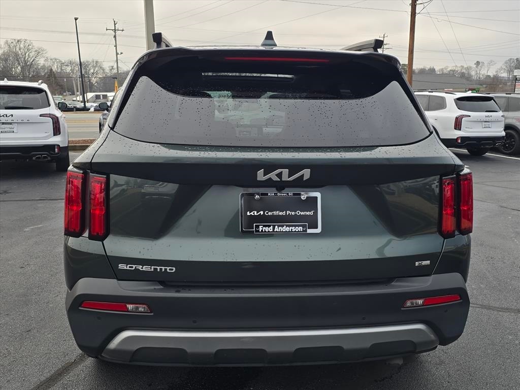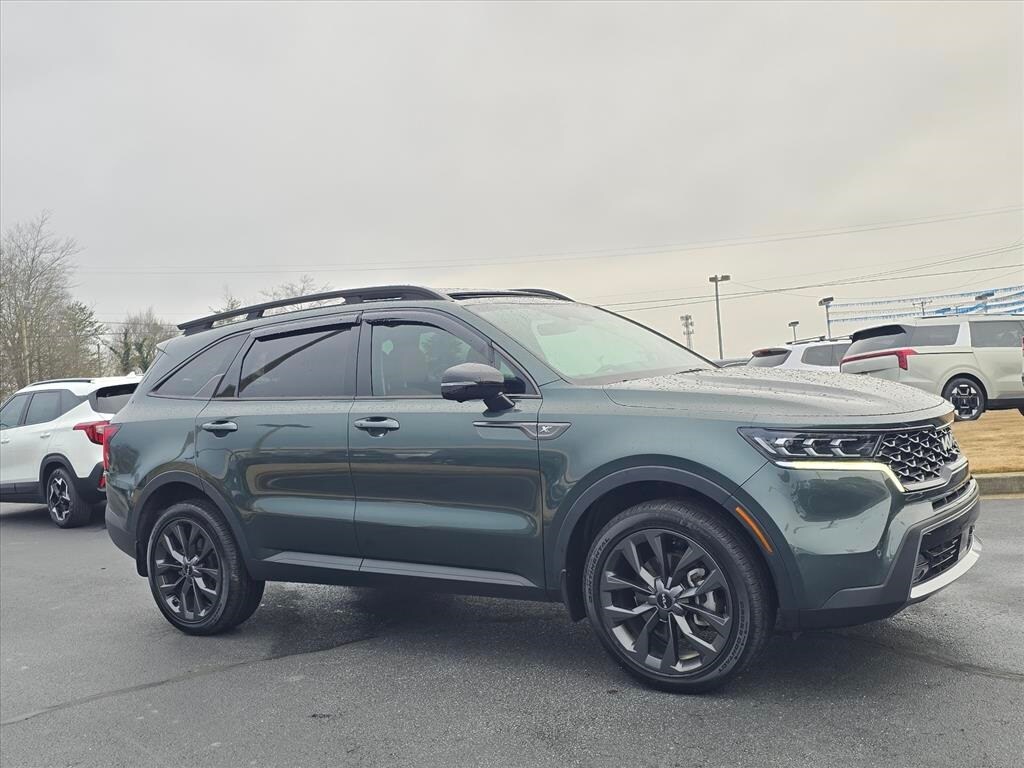 Recent Arrival! CARFAX One-Owner. Clean CARFAX. 2023 Kia Sorento X-Line SX Prestige Aruba Green 12 Speakers, 3.316 Axle Ratio, 3rd row seats: split-bench, 4-Wheel Disc Brakes, ABS brakes, Air Conditioning, Alloy wheels, AM/FM radio: SiriusXM, Apple CarPlay & Android Auto, Auto High-beam Headlights, Auto-dimming Rear-View mirror, Automatic temperature control, Brake assist, Bumpers: body-color, Carpet Floor Mats, Delay-off headlights, Driver door bin, Driver vanity mirror, Dual front impact airbags, Dual front side impact airbags, Electronic Stability Control, Emergency communication system, Four wheel independent suspension, Front anti-roll bar, Front Bucket Seats, Front Center Armrest, Front dual zone A/C, Front fog lights, Front reading lights, Fully automatic headlights, Garage door transmitter: HomeLink, Heated & Ventilated Front Bucket Seats, Heated door mirrors, Heated front seats, Heated rear seats, Heated steering wheel, Illuminated entry, Knee airbag, Leather steering wheel, Low tire pressure warning, Memory seat, Navigation System, Occupant sensing airbag, Outside temperature display, Overhead airbag, Overhead console, Panic alarm, Passenger door bin, Passenger vanity mirror, Perforated Genuine Leather Seat Trim, Power door mirrors, Power driver seat, Power Liftgate, Power moonroof, Power passenger seat, Power steering, Power windows, Radio data system, Radio: AM/FM Bose Premium Audio System, Rain sensing wipers, Rear air conditioning, Rear anti-roll bar, Rear reading lights, Rear window defroster, Rear window wiper, Remote keyless entry, Roof rack: rails only, Security system, Smart Key w/ Push Button and Remote Start, Speed control, Speed-sensing steering, Split folding rear seat, Spoiler, Steering wheel mounted audio controls, Tachometer, Telescoping steering wheel, Tilt steering wheel, Traction control, Trip computer, Turn signal indicator mirrors, Variably intermittent wipers, Ventilated front seats, Wheels: 8.5J x 20" Matte Gray Alloy, X-Line Rust Interior Color Package.
