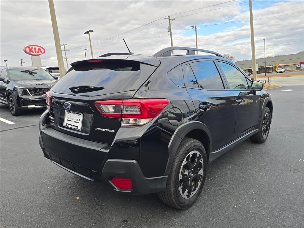 CARFAX One-Owner. 2023 Subaru Crosstrek Crystal Black Silica 3.90 Axle Ratio, 4 Speakers, 4-Wheel Disc Brakes, ABS brakes, Air Conditioning, Alloy wheels, AM/FM radio, Anti-whiplash front head restraints, Automatic temperature control, Brake assist, Bumpers: body-color, Cloth Upholstery, Driver door bin, Driver vanity mirror, Dual front impact airbags, Dual front side impact airbags, Electronic Stability Control, Exterior Parking Camera Rear, EyeSight System, Four wheel independent suspension, Front anti-roll bar, Front Bucket Seats, Front Center Armrest, Front reading lights, High Grade Combination Meter w/Color LCD Display, Illuminated entry, Knee airbag, Low tire pressure warning, Occupant sensing airbag, Outside temperature display, Overhead airbag, Overhead console, Overhead Console Shower Light, Panic alarm, Passenger door bin, Passenger vanity mirror, Power door mirrors, Power steering, Power windows, Radio data system, Radio: Subaru STARLINK 6.5" Multimedia System, Rear anti-roll bar, Rear Seat Reminder, Rear window defroster, Rear window wiper, Remote keyless entry, Security system, Speed control, Speed-sensing steering, Split folding rear seat, Spoiler, Standard Model (CVT), STARLINK/Apple CarPlay/Android Auto, Steering wheel mounted audio controls, Tachometer, Telescoping steering wheel, Tilt steering wheel, Tire Pressure Monitoring System, Traction control, Trip computer, Variably intermittent wipers, Wheels: 17" x 7.0J Alum Alloy Blk w/Machine Finish.
