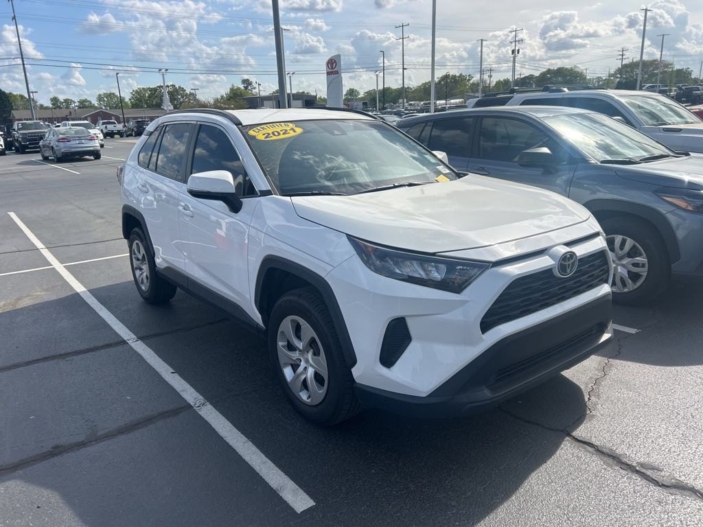 Recent Arrival! 2021 Toyota RAV4 LE Super White 17" Steel Wheels, 4-Wheel Disc Brakes, 6 Speakers, ABS brakes, Air Conditioning, AM/FM radio: SiriusXM, AM/FM Stereo, Apple CarPlay/Android Auto, Auto High-beam Headlights, Axle Ratio: 3.177, Brake assist, Bumpers: body-color, Driver door bin, Driver vanity mirror, Dual front impact airbags, Dual front side impact airbags, Electronic Stability Control, Emergency communication system, Exterior Parking Camera Rear, Fabric Seat Trim, Four wheel independent suspension, Front anti-roll bar, Front Bucket Seats, Front Center Armrest, Front reading lights, Illuminated entry, Knee airbag, Low tire pressure warning, Occupant sensing airbag, Outside temperature display, Overhead airbag, Overhead console, Panic alarm, Passenger door bin, Passenger vanity mirror, Power door mirrors, Power steering, Power windows, Radio data system, Rear anti-roll bar, Rear seat center armrest, Rear window defroster, Rear window wiper, Remote keyless entry, Roof rack: rails only, Speed control, Speed-sensing steering, Split folding rear seat, Spoiler, Steering wheel mounted audio controls, Tachometer, Telescoping steering wheel, Tilt steering wheel, Traction control, Trip computer.