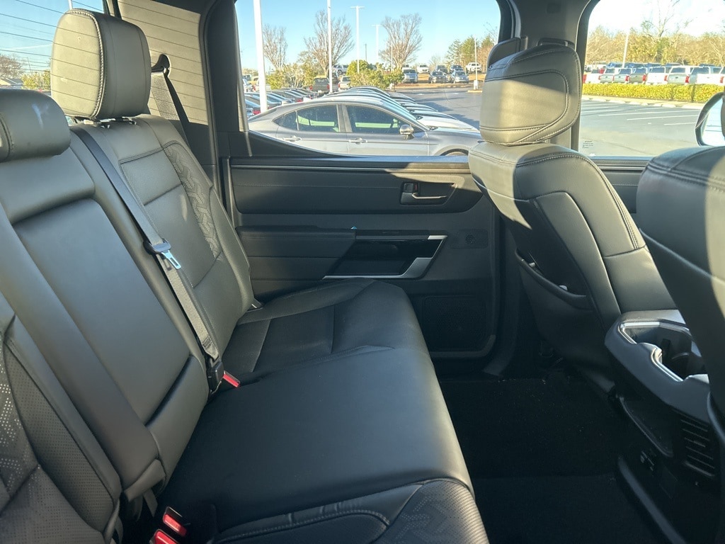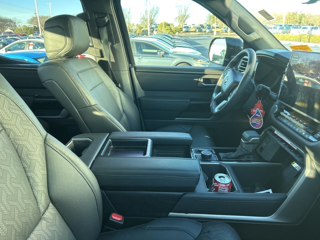 Recent Arrival! CARFAX One-Owner. 2025 Toyota Tundra Limited Midnight Black Metallic 20" Alloy Wheels, 3.31 Axle Ratio, 4-Wheel Disc Brakes, 8-Way Pwr Adjustable Heated/Ventilated Front Seats, 9 Speakers, ABS brakes, Air Conditioning, Alloy wheels, AM/FM radio: SiriusXM, Apple CarPlay/Android Auto, Auto High-beam Headlights, Auto-dimming door mirrors, Auto-dimming Rear-View mirror, Automatic temperature control, Brake assist, Bumpers: body-color, Delay-off headlights, Driver door bin, Driver vanity mirror, Dual front impact airbags, Dual front side impact airbags, Electronic Stability Control, Emergency communication system: Safety Connect (10-year trial), Exterior Parking Camera Rear, Front anti-roll bar, Front Bucket Seats, Front Center Armrest, Front dual zone A/C, Front fog lights, Front reading lights, Front wheel independent suspension, Fully automatic headlights, Garage door transmitter: HomeLink, Heated door mirrors, Heated front seats, Illuminated entry, Knee airbag, Leather Shift Knob, Leather steering wheel, Low tire pressure warning, Memory seat, Navigation System, Occupant sensing airbag, Outside temperature display, Overhead airbag, Overhead console, Panic alarm, Passenger door bin, Passenger vanity mirror, Power door mirrors, Power driver seat, Power passenger seat, Power steering, Power windows, Radio data system, Radio: Audio Multimedia System, Rear reading lights, Rear seat center armrest, Rear step bumper, Rear window defroster, Remote keyless entry, Safety Connect, Security system, SofTex Seat Trim, Speed control, Speed-sensing steering, Split folding rear seat, Steering wheel mounted audio controls, Tachometer, Telescoping steering wheel, Tilt steering wheel, Traction control, Trip computer, Turn signal indicator mirrors, Variably intermittent wipers, Ventilated front seats, Voltmeter.